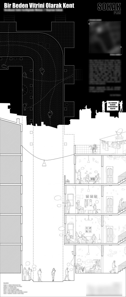 At the end of the program each researcher was expected to present their findings in a pin-up. To best display my research I came up with architectural drawings and diagrams showing the aforementioned dialogue. Accompanied by a text-based research paper, photo albums and models, the drawings represented the dynamics in the street.