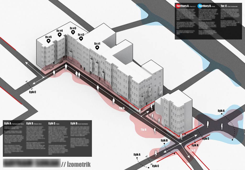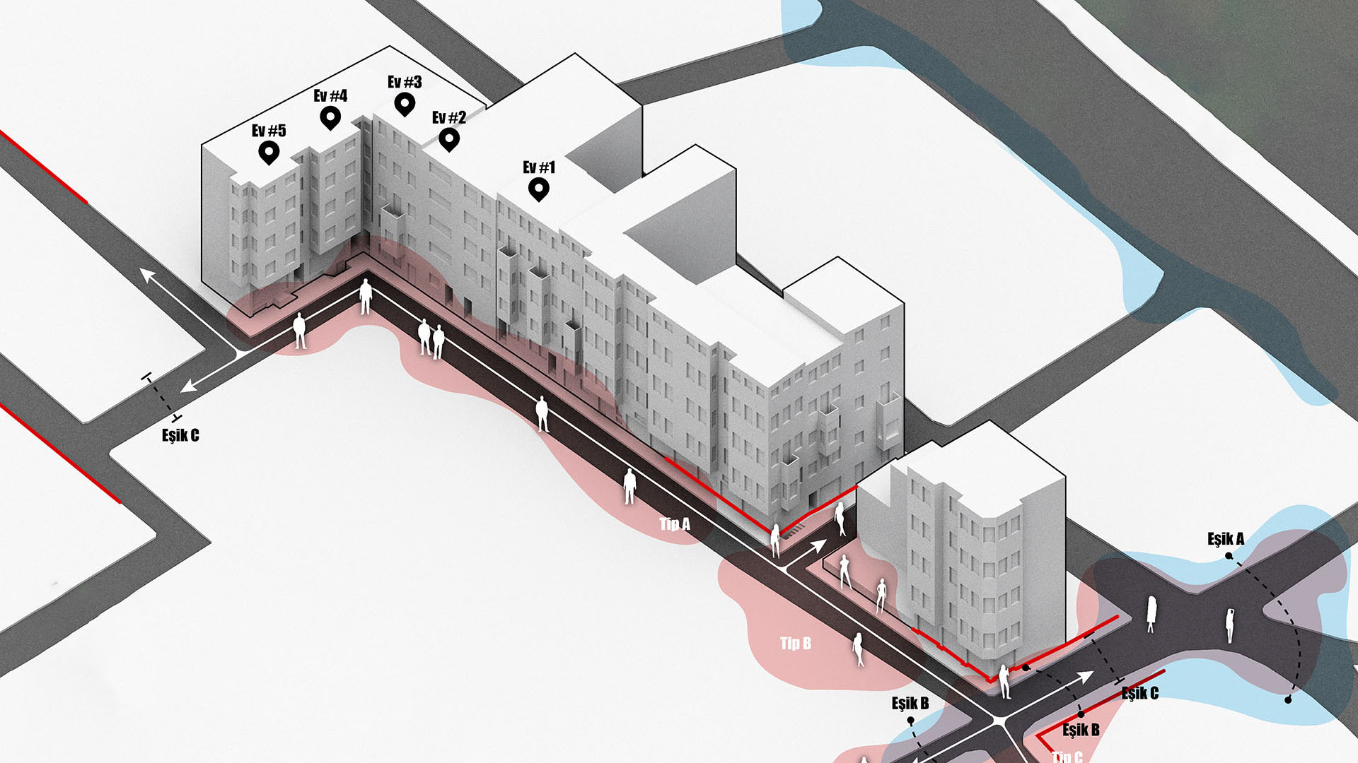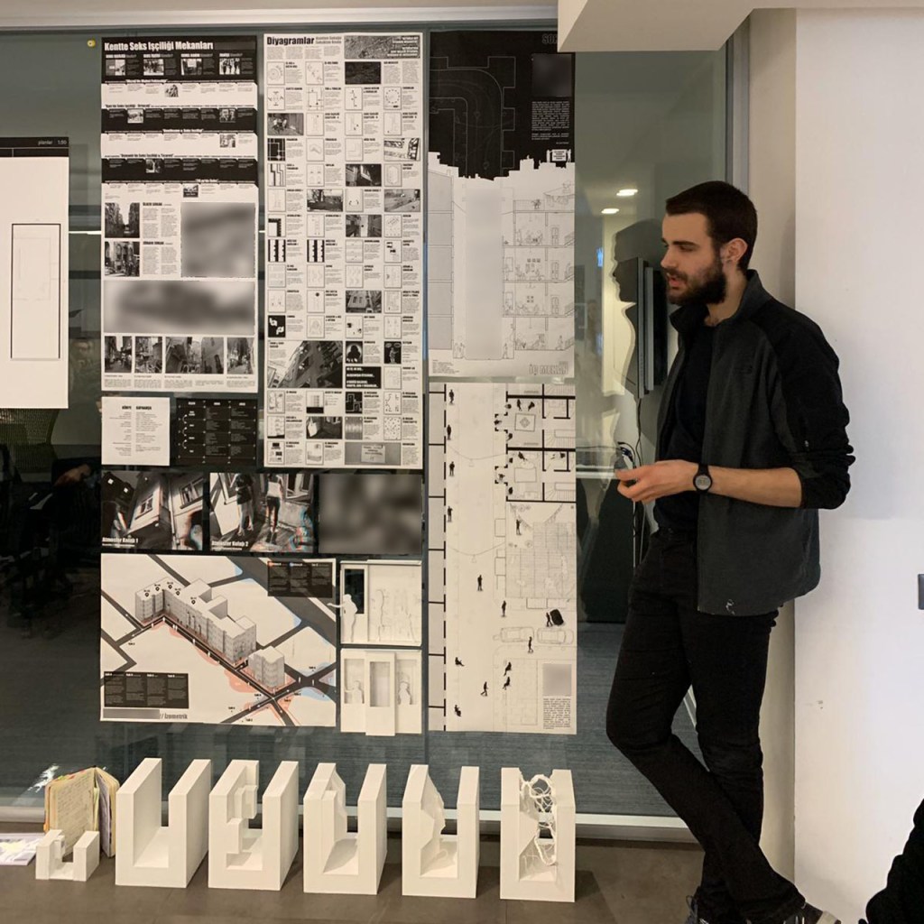 In my research I investigated spaces of sex work as heterotopias in relation to tectonics. I explored how tectonics of the built environment influenced sex work both indoors and outdoors. I discovered both factual and speculative clues on the dialogue between the practice and the space. For my research I focused specifically on a street in Istanbul known for the local sex work.