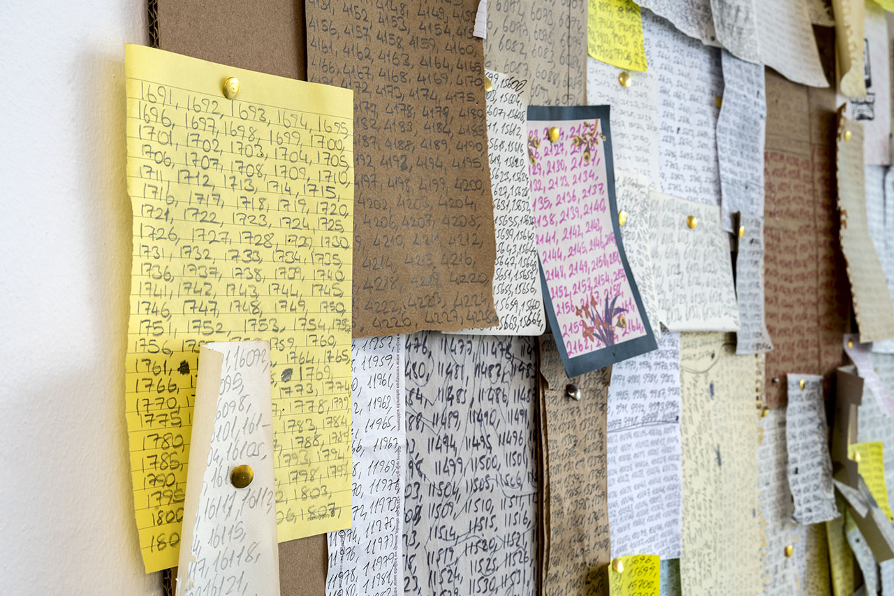 I consider this work as a diary or an archive. It was simple in terms of material. I only used pens and spare surfaces to write on. However, it was a long journey spread over months, even years. In short, it is a documentation of my inner rhythm throughout the early months / years of the pandemic.