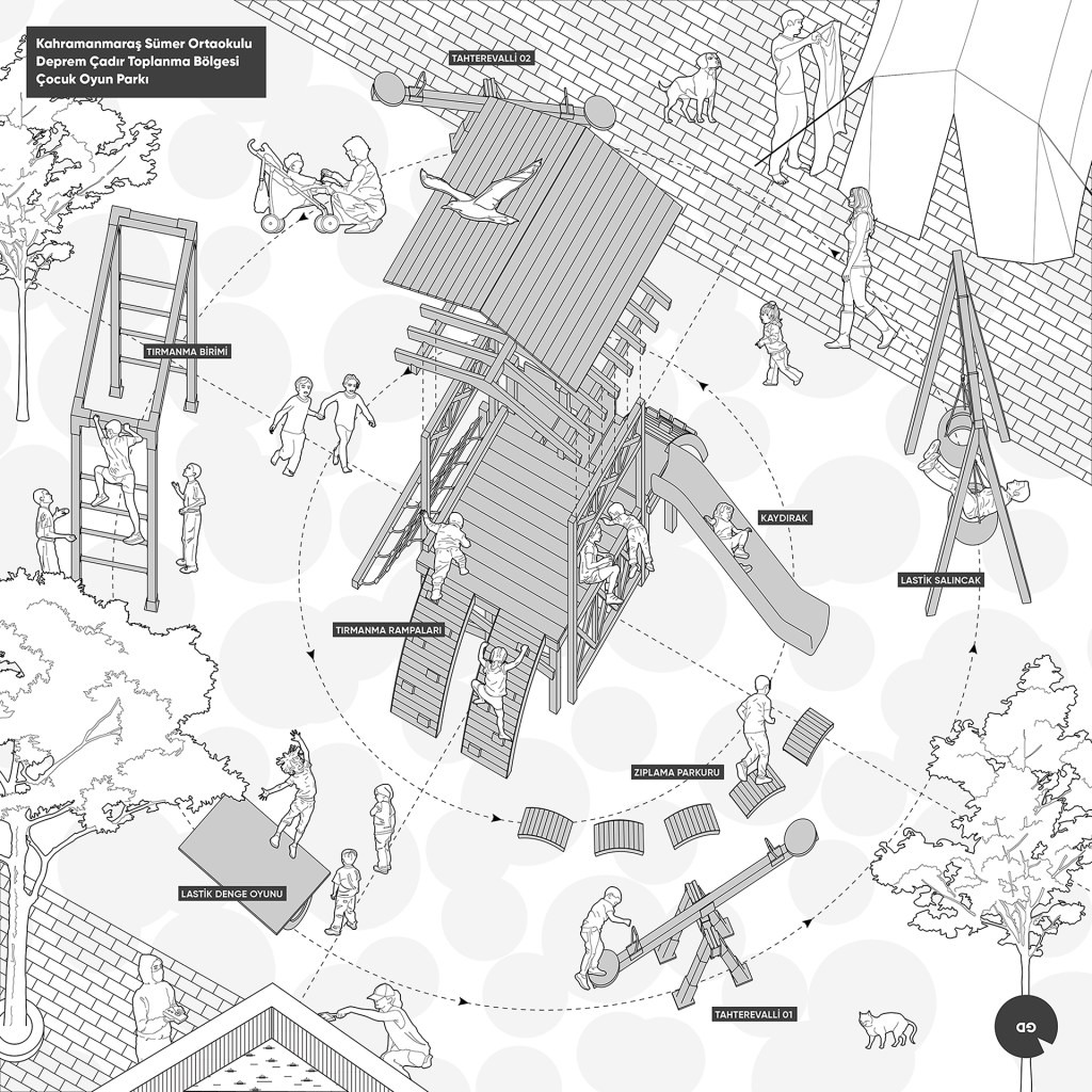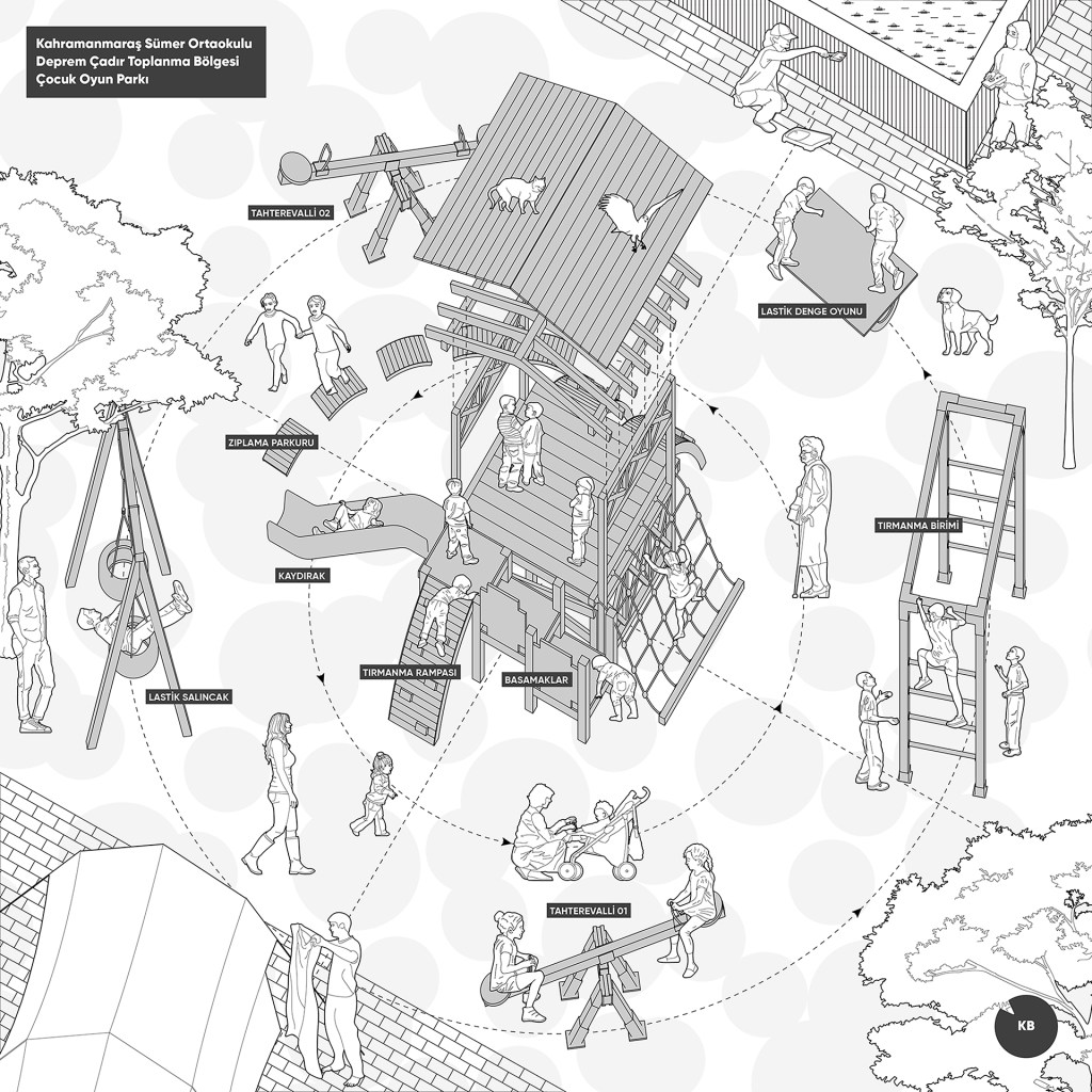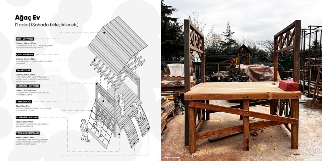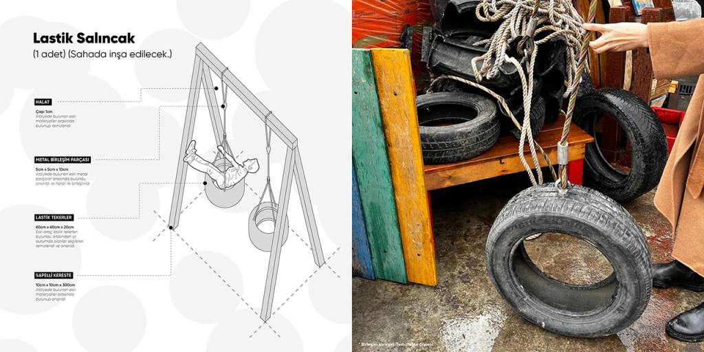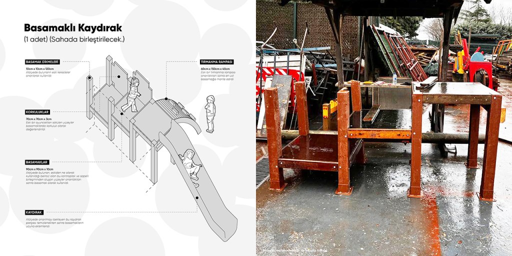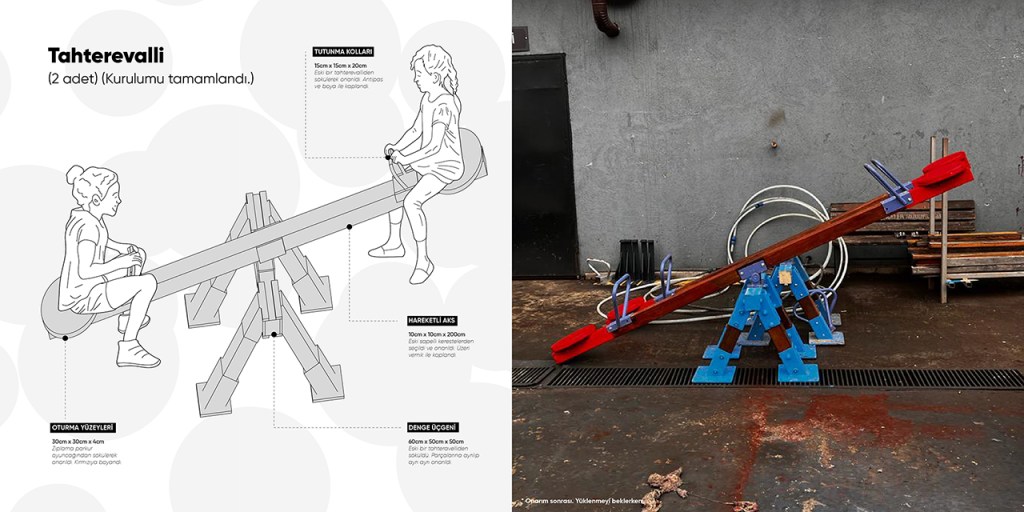 As part of the workshop I participated in, I, along with other architects and designers, built a playground for the children who survived the earthquake and continued to live in the affected region. We made the playground entirely from spare and recyclable materials. Upon finishing the work, we decided on publishing this work hoping it’d be an example for others. The drawings and diagrams included in our publications were featured in the press.