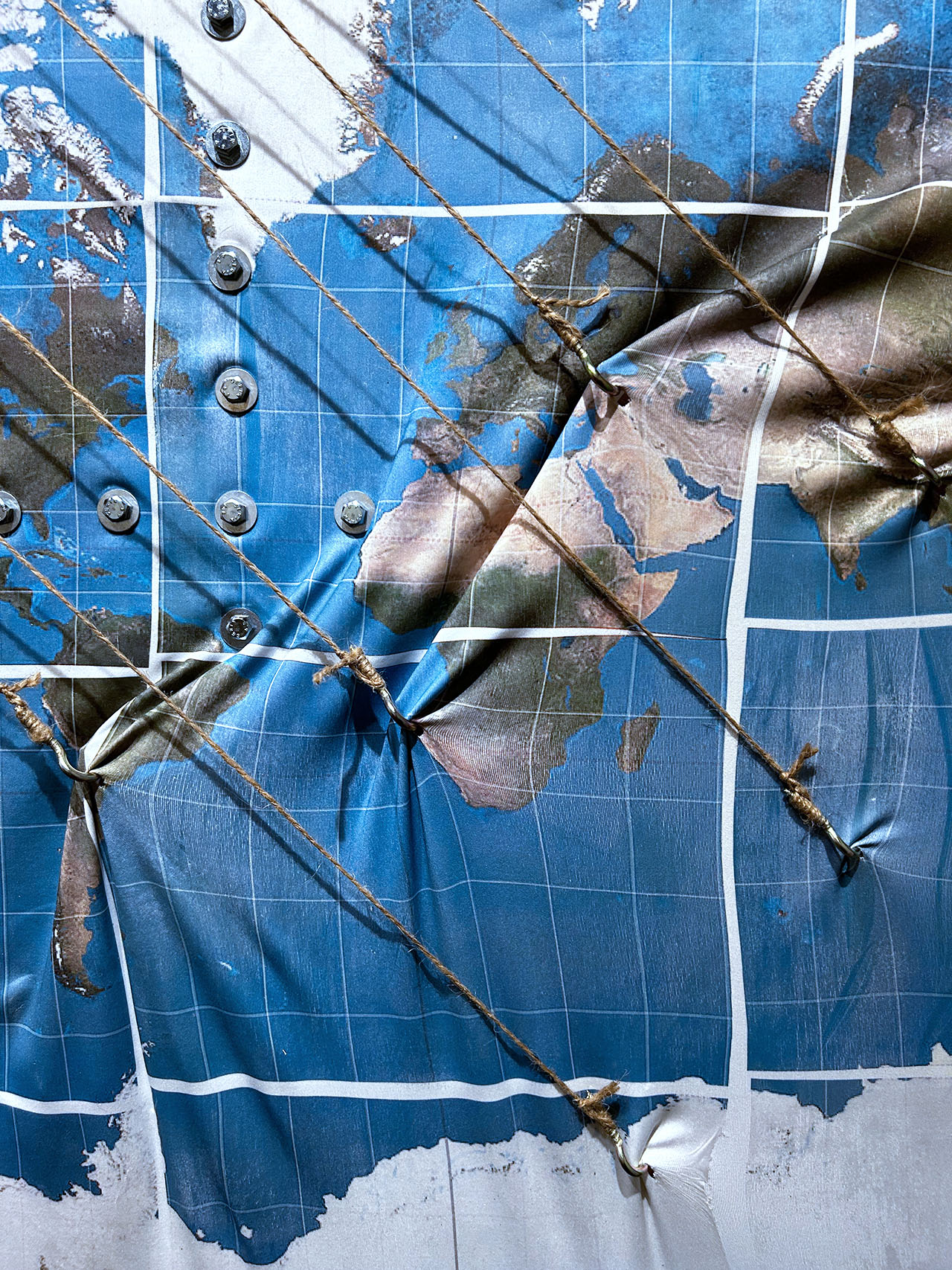 layer, peeled, political map, stretched, thinned, worn off, corroded