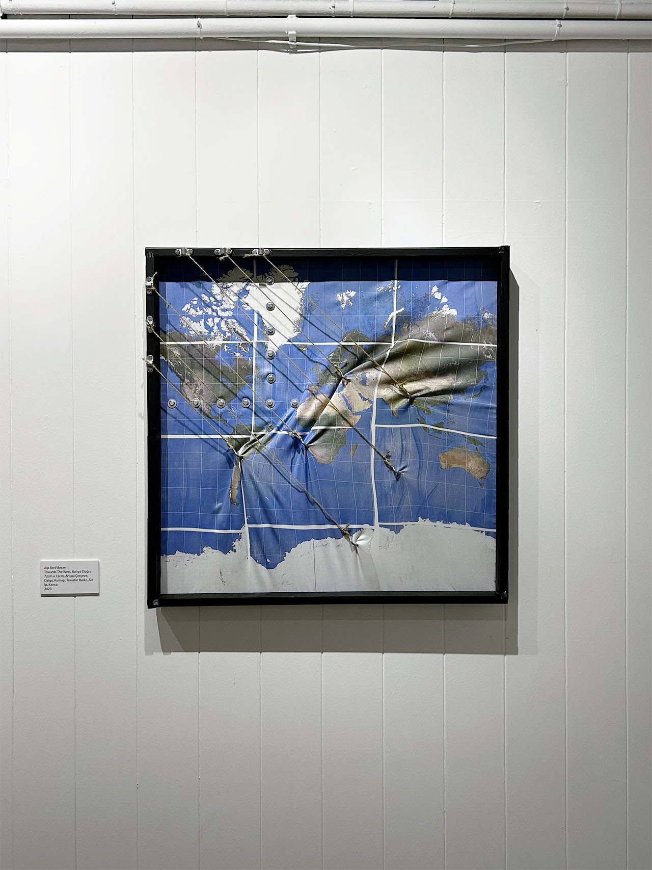 Wooden Frame, Scuba Fabric, Heat Transfer Print, Nails, thread, hook, hot glue