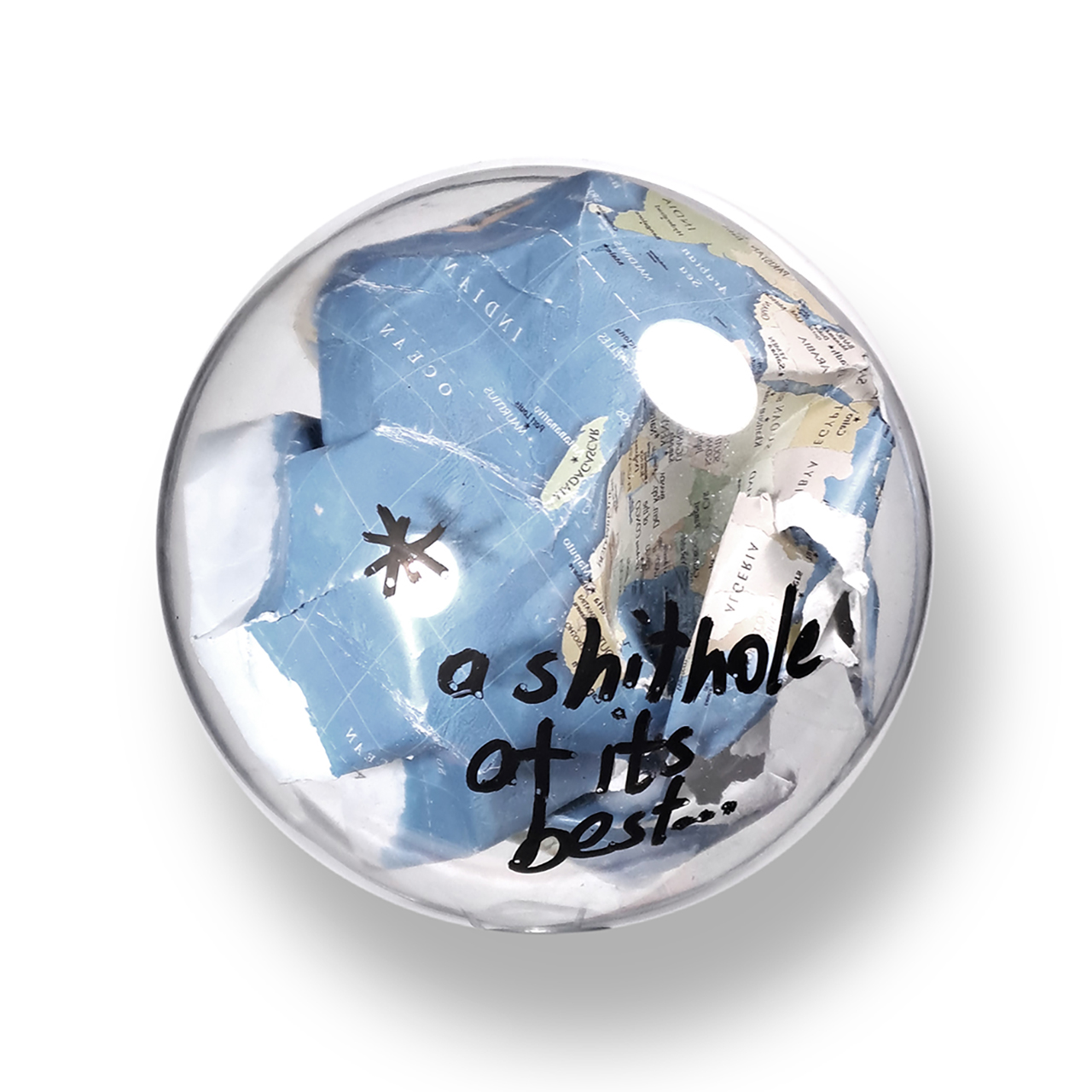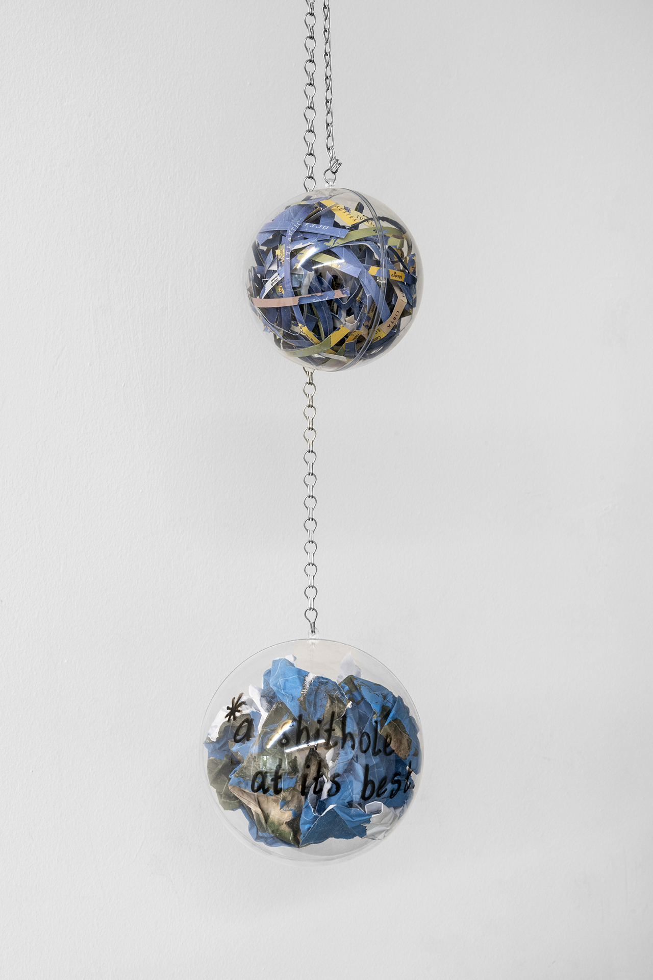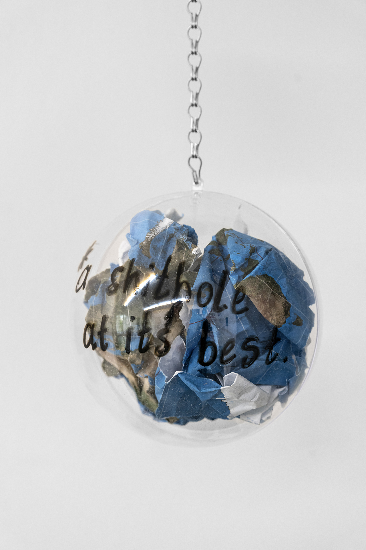 mika sphere, print, metal chain
