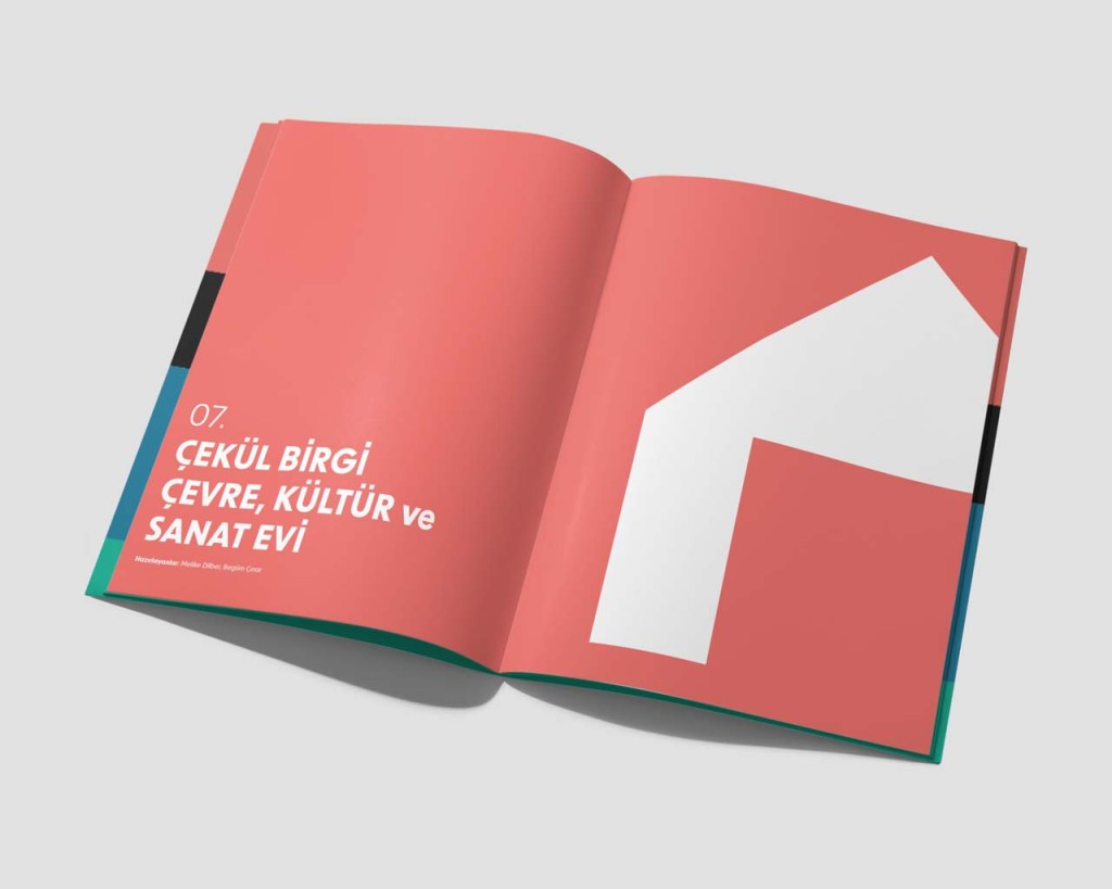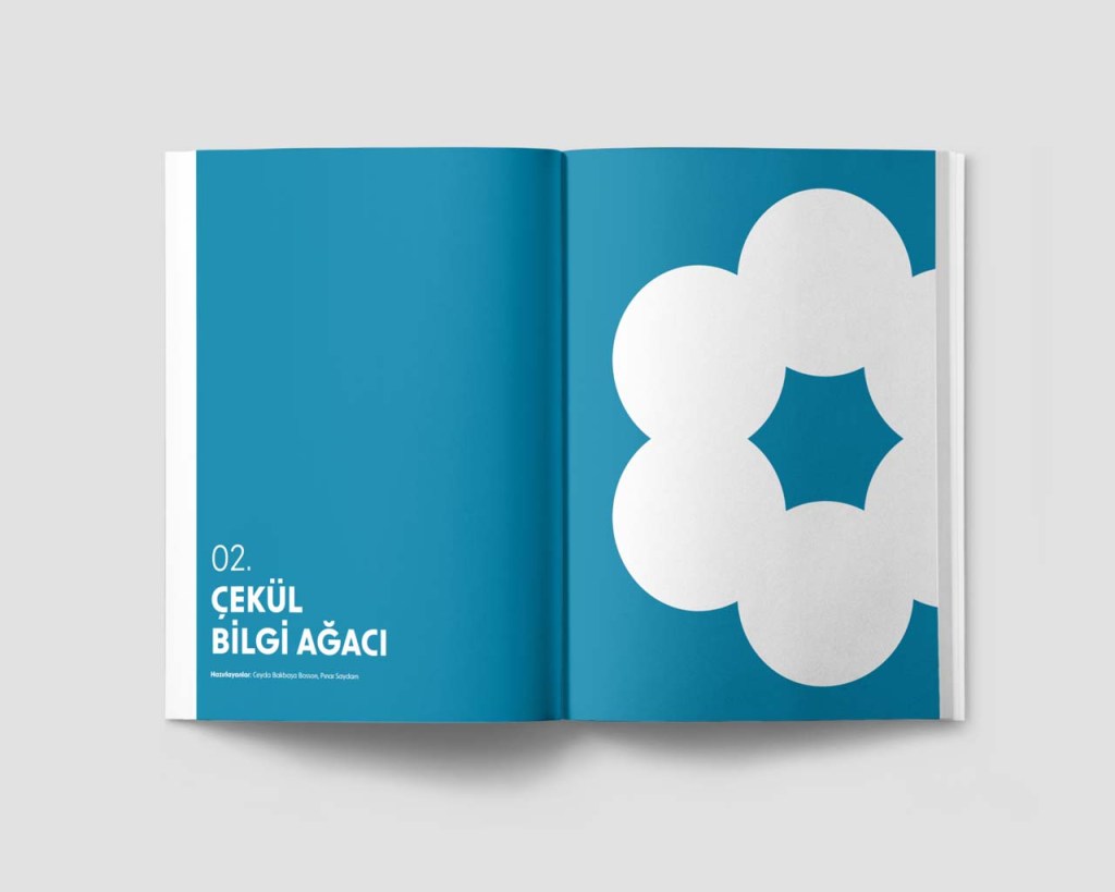 ÇEKÜL’s recently designed corporate identity was at first quite challenging. It had a very feel to it. It was comprised of large plain blocks, all in primary colors and mostly incorporated in the design in the form of typography. That presented a level of challenge for it was difficult to stretch and variate. My first task was to analyze and learn from the corporate identity, noting a few lessons that could be helpful in the book design.